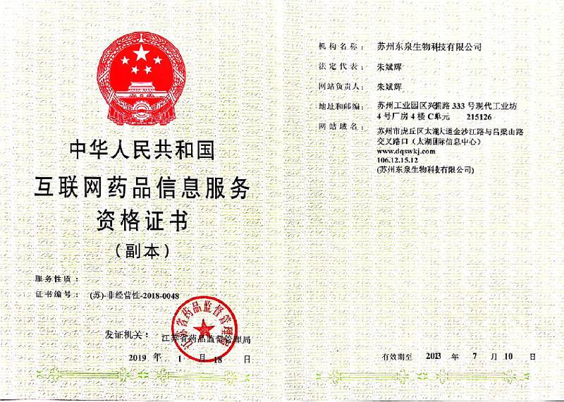 互聯(lián)網(wǎng)藥品信息服務(wù)證書副本