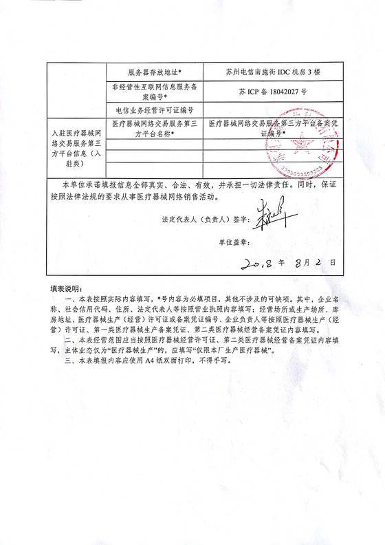 醫(yī)療器械網(wǎng)絡(luò)銷售信息表正面